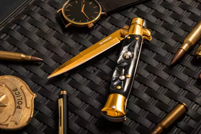 Diseñado con el clásico toque italiano, este estilete combina elegancia y eficiencia. Su mecanismo de botón permite un despliegue rápido y fácil, asegurando que siempre estés preparado. El estilete Razor no solo es una herramienta eficaz, sino también una declaración de estilo y sofisticación. Acompaña a los héroes modernos y exploradores en cada paso de su camino.