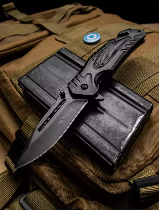Una navaja de apertura asistida tiene un resorte interno que se acciona mediante un flipper para que se abra automáticamente a una sola mano.