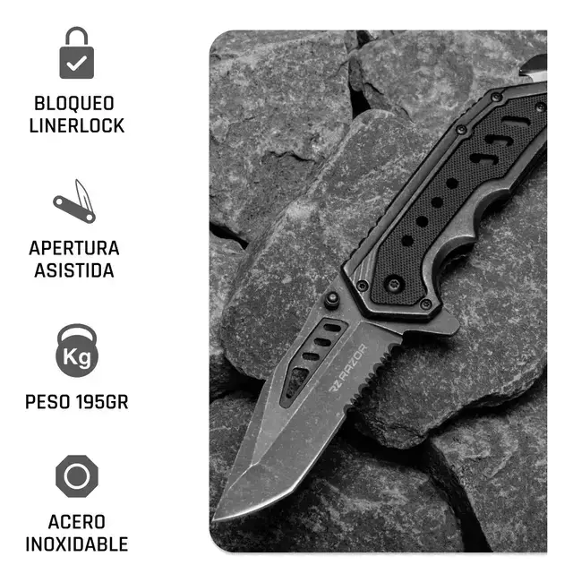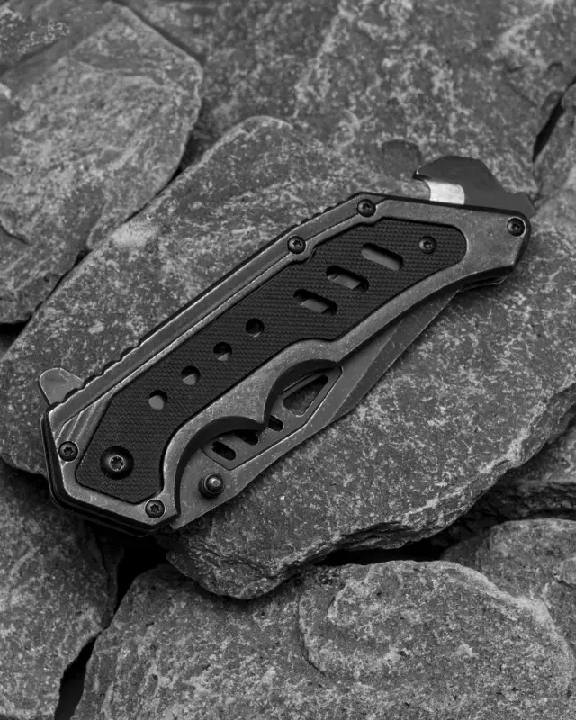 De las navajas mas afiladas de la serie, presentamos este nuevo modelo de rescate tipo táctico pero con un toque desgastado antiguo en su hoja y mango. El G10 deja ver la calidad de sus materiales. Muy robusta y con buen peso la convierten en una navaja muy dura para una mayor presión en los cortes.